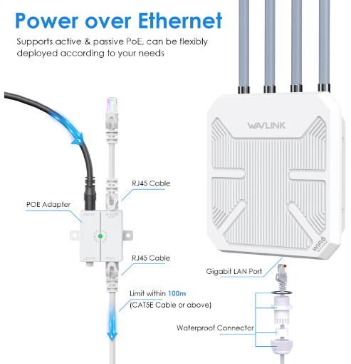 WAVLINK WiFi6 Outdoor Access Point, Dual Band 2.4G+5G AX3000